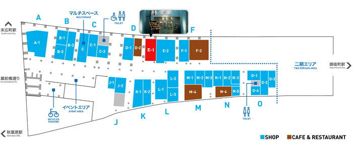 | 駅からのアクセス | 山手線 秋葉原駅から徒歩5分/御徒町駅から徒歩3分 銀座線 末広町駅から徒歩3分 2k540 AKI-OKA ARTISAN E-1 |